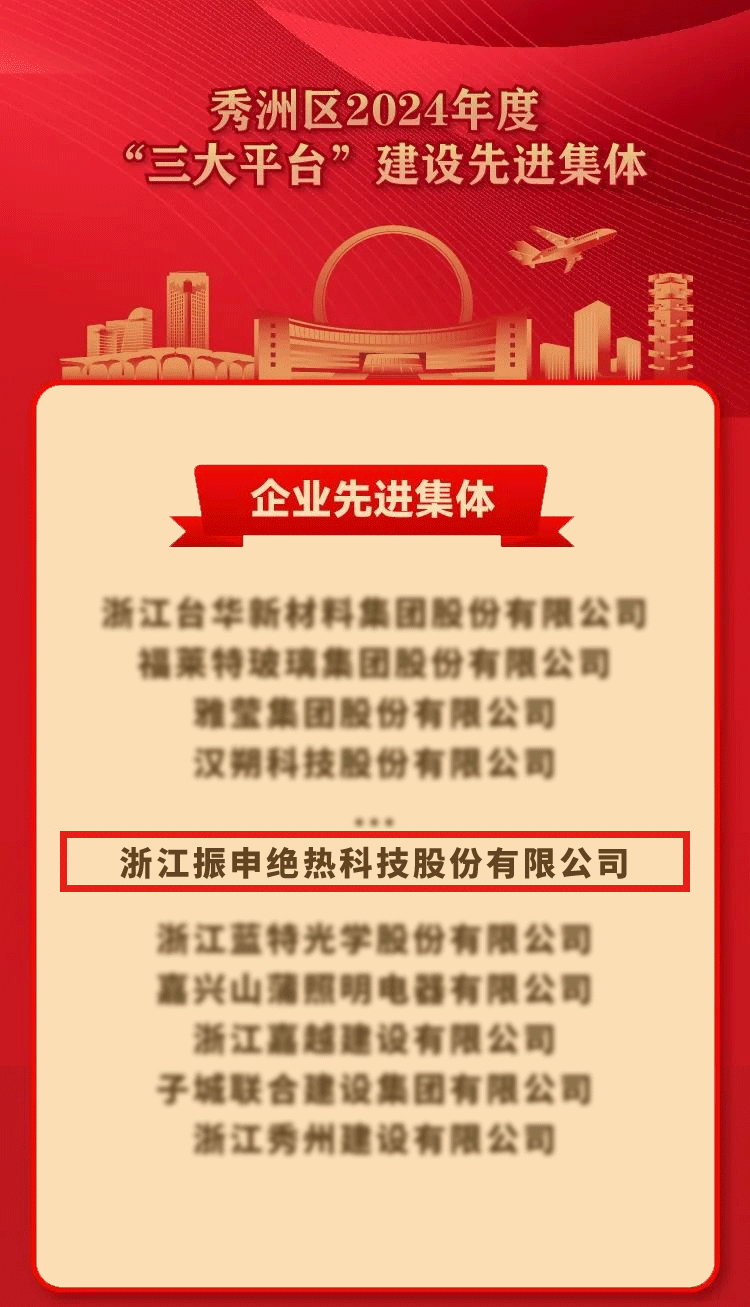 會(huì)議通報(bào)了2024年度全區(qū)綜合考核結(jié)果,一批企業(yè)和單位受到表彰表揚(yáng)。在本次大會(huì)上,振申絕熱憑借其在絕熱領(lǐng)域的卓越表現(xiàn),榮獲秀洲區(qū)2024年度“企業(yè)先進(jìn)集體”稱號。