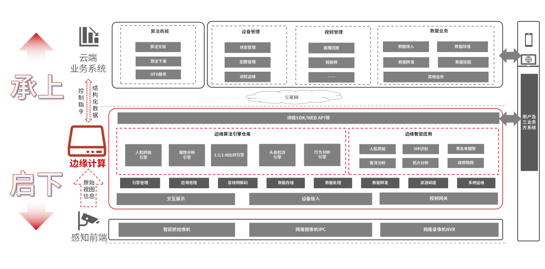 諦格AI定義小站將原始數據進行提取、以結構化方式傳送到云端,在云端進行業務處理,實現前端設備與云端業務系統整體聯動,以云邊端一體化、閉環式高效處理業務。從架構上,作為閉環式設備,諦格能夠承上啟下,靠近數據源、就近解析、實時快速響應。