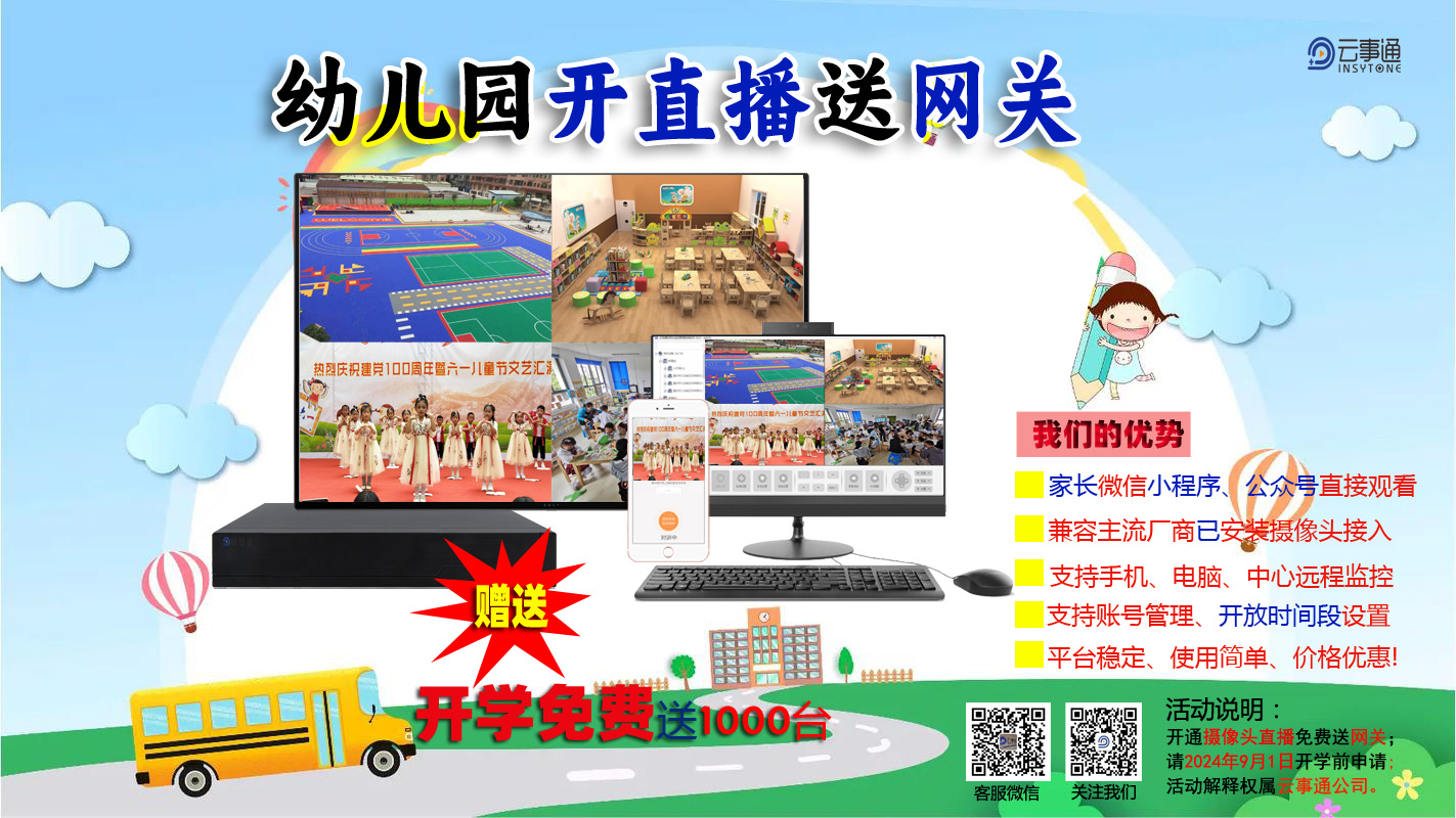 幼兒園開通攝像頭直播免費(fèi)送轉(zhuǎn)碼網(wǎng)關(guān)